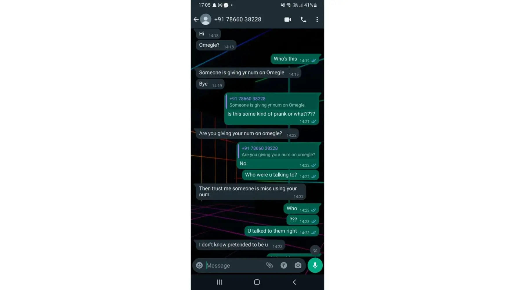 My mobile number ([protected]) is being shared in Omegle chats without my consent by some unknown person. Omegle is not installed on phone neither using it.