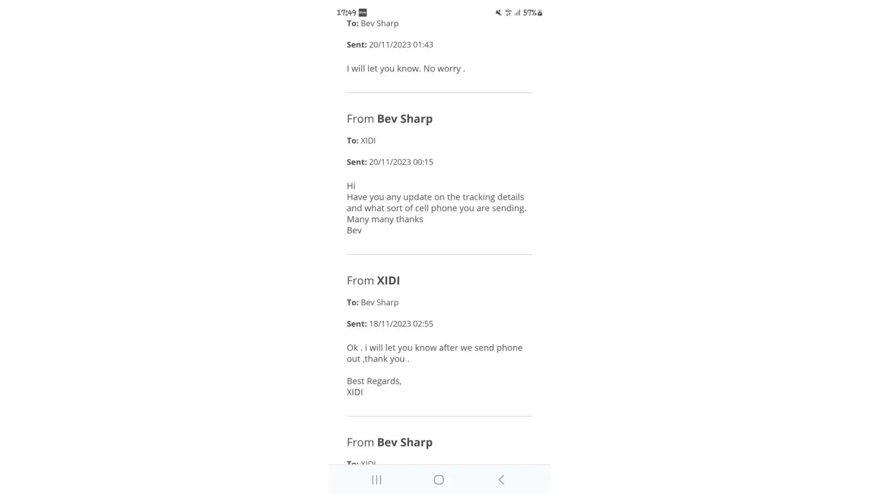 I ordered a mobile phone that arrived on 17th November 2023 under evri tracking number H03JZA0035622101.