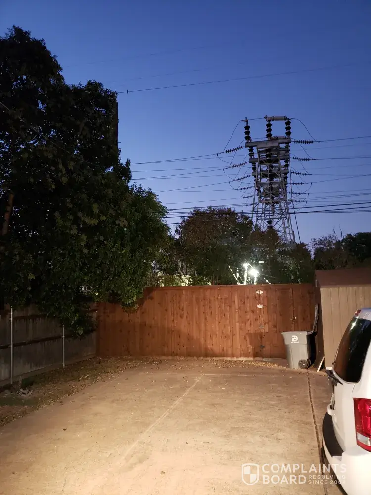 I just came home to find Oncor has installed Lighting in the substation behind my home, The lighting is shining into my back windows and back yard. I need the lighting lowered or taken down. This is devalued my property. The lighting dose not have to be a steet light nor dose it need to shine in my yard. Please have this take care of this week, October 22, 2019 installed This complaint being made the same day