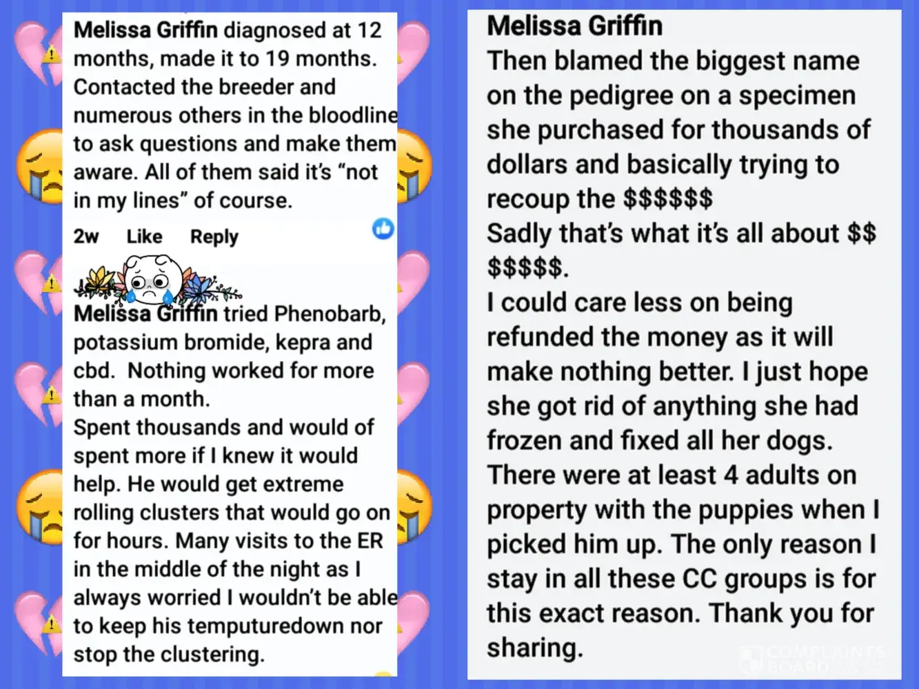 It’s sad to hear such hatred and one of these people that wrote the most about me stalked me to the point that I had shut down my social media because she stalked me so terribly, all times of the day and night that I had to cut off my phone.because I didn’t know her and had never met her and she was not the original buyer. I didn’t even know the dog was sold.