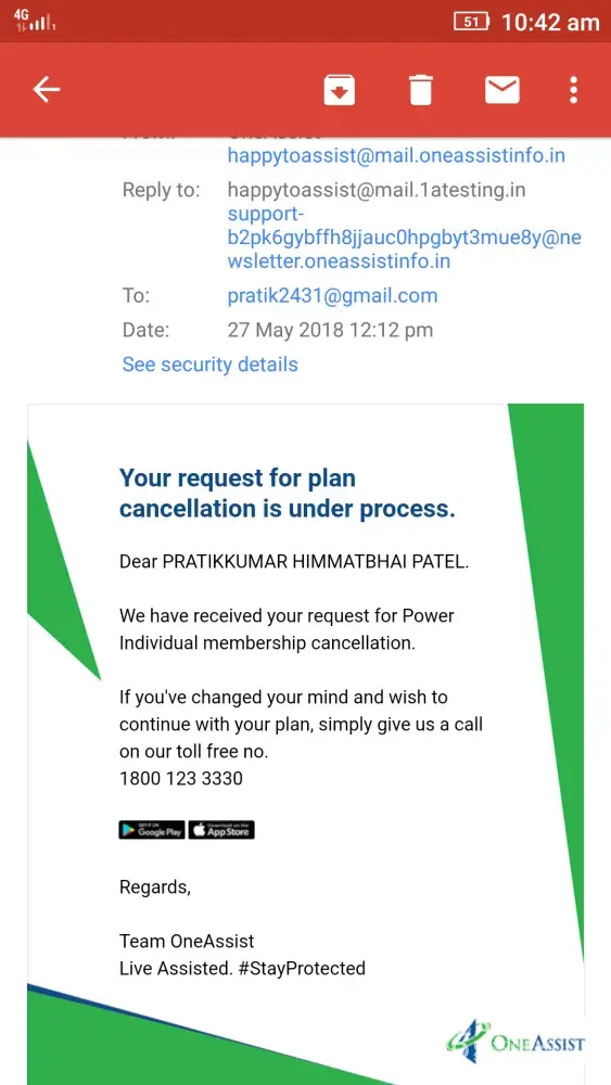 OneAssist Consumer Solutions Without my permission activate one Assist app service