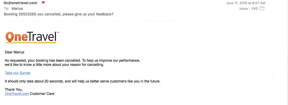 OneTravel are terrible, don't use their service, stay as far as you can! Total disrespect!
