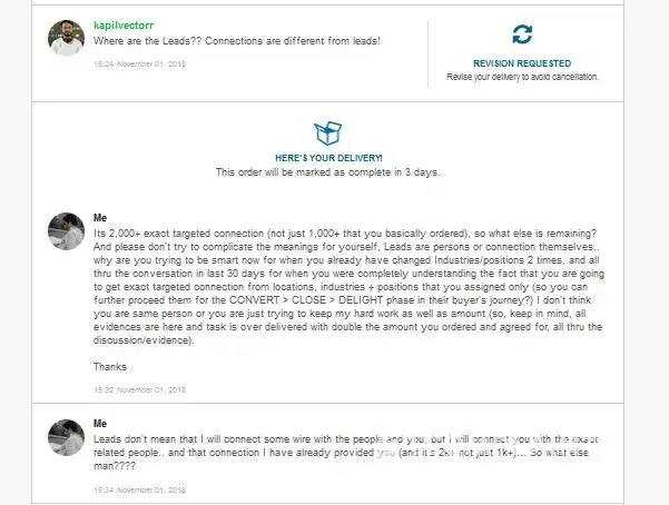 Beware to never deal with the person named Kapil Wanaskar (Founder of Vectorr.in, based in Tunga Village, Chandivali, Powai, Mumbai, Maharashtra 400072) is a habitual scammer. He placed order with me, kept on modifying the industries/positions for the ordered leads, and once I over-delivered him (with 2k+ leads, instead of just 1k+ leads) then he kept on...