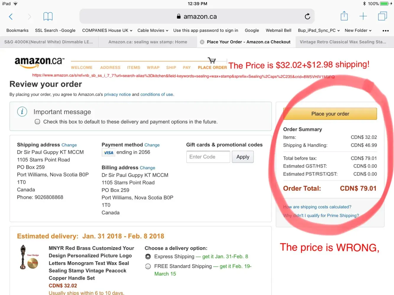 Price quoted including shipping is not the price shown on checkout page. Amazon.ca refuse to allow contact with supplier until order placed! Amazon.ca will not provide an email link to forward screen prints recording mistakes by their staff! Amazon.ca with a Head Office in Ontario, Canada refuse to comply with a Disabilities aregulations partivularly...