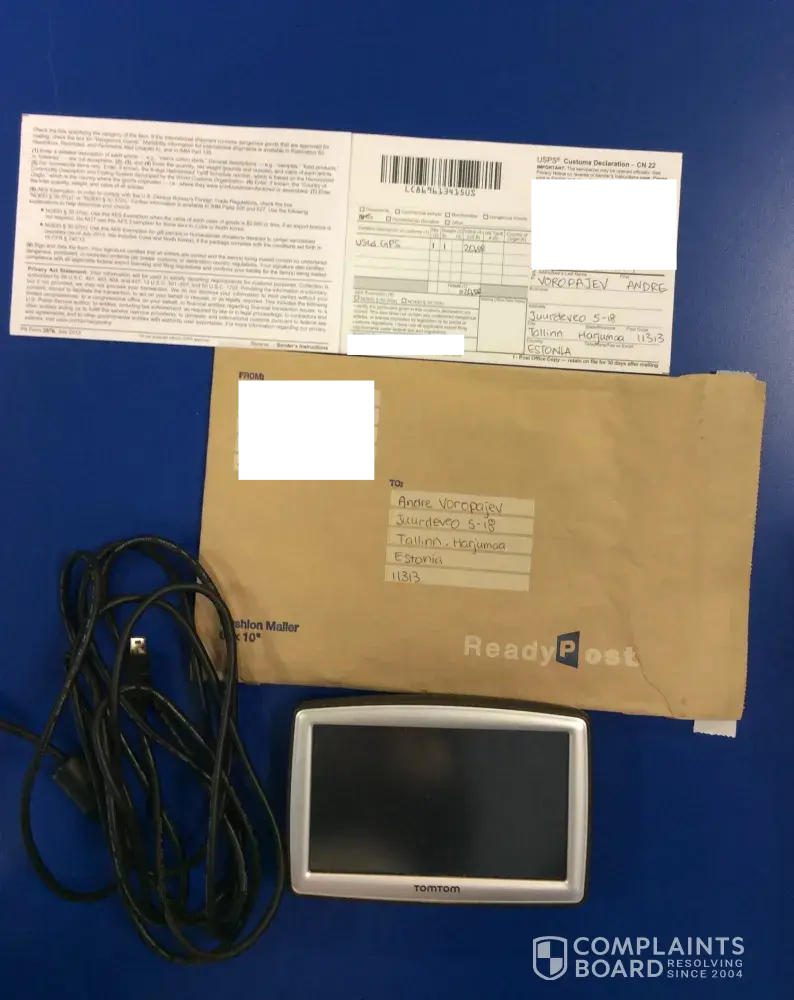 I was messaged by Himot Hiina, A.K.A. Andre Voropajev on Ebay with regard to my ad of an TomTom XXL n14644 5 Screen GPS Navigation unit that I was selling. He said he was interested in buying the GPS and requested me to ship it internationally to Estonia using USPS First-Class Mail. He said he will take full responsibility if the item should get damaged. I...