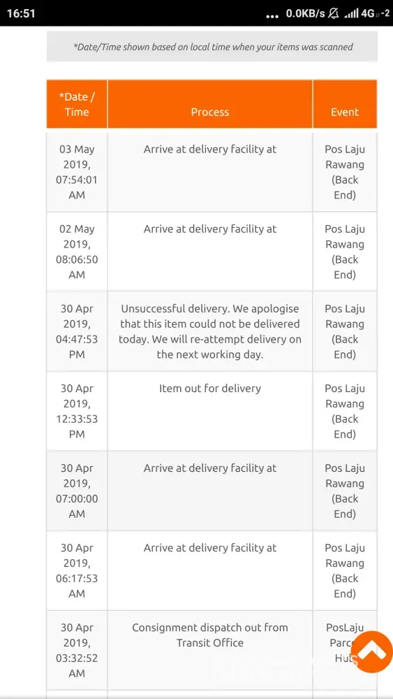 Read full complaintPos Laju Rawang - Back end/unsuccessful delivery