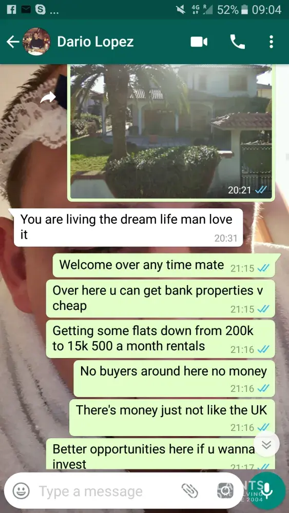 And Yes James is living in italy! Most people would dream to pack up and move abroad! Like Dario Lopez said on whatsapp the other day = Your living the dream! Screen shot attached.