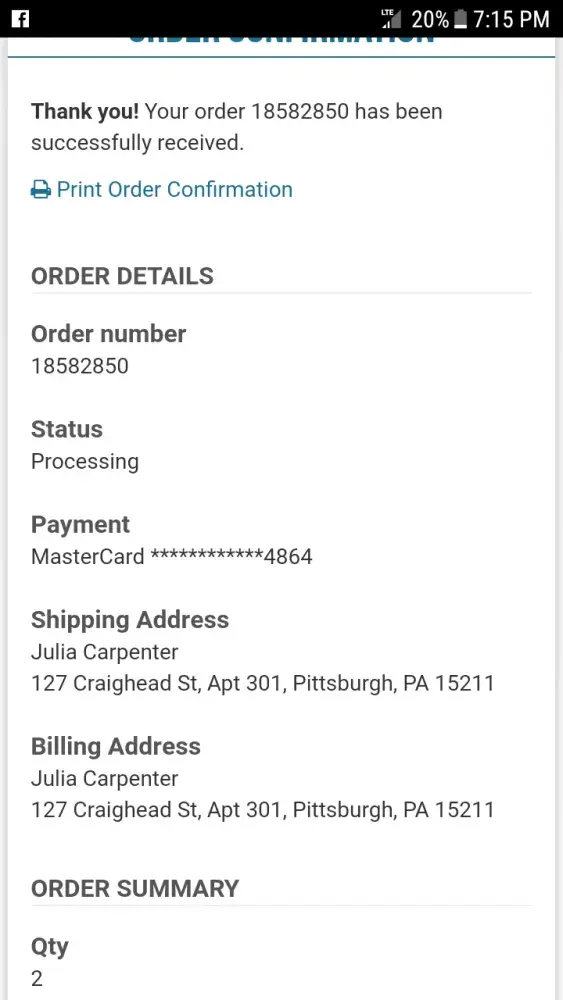 We have received your order!