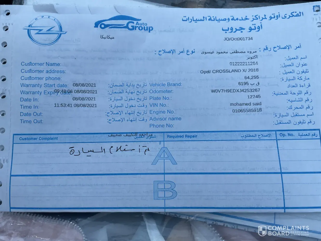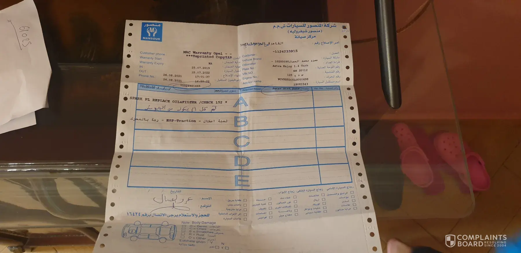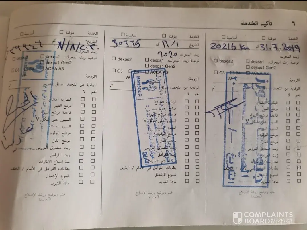 I have a complaint aginst your agent in Egypt; El-Mansour. My car is Opel Mokka, 2016, motor # [protected], chassis # 567734. It has run for only 58.000 k.m.