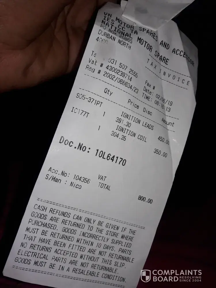 I told Nicolene that they must then leave the car, I'll have it towed elsewhere. A few minutes later when the tower had come to collect the car, she calls me back telling me I have to pay an additional R1297.59, to which she said it was for "VAT" for the "parts" ordered. I told her I don't understand, and I still don't understand why I would pay "tax" separate. She also told me the car would not be released until I pay the "VAT" amount.