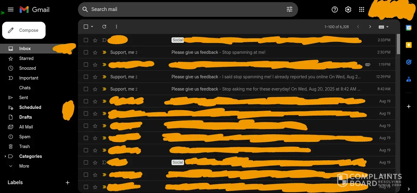 Now they're trying to spam me messages on how I'm doing on whatever case number it is but there's no mention of the case number in any emails. If you look at the email screenshot (the one it asks for feedback, that is recently changed also). As for the other one, it shows how many emails that I have been asked to rate for feedback (the screenshot shows 3 but it happened more than 3 times but if you look at the right side of the email, it will show you what times it just sends me the email (I covered most of them to make sure we are on topic))