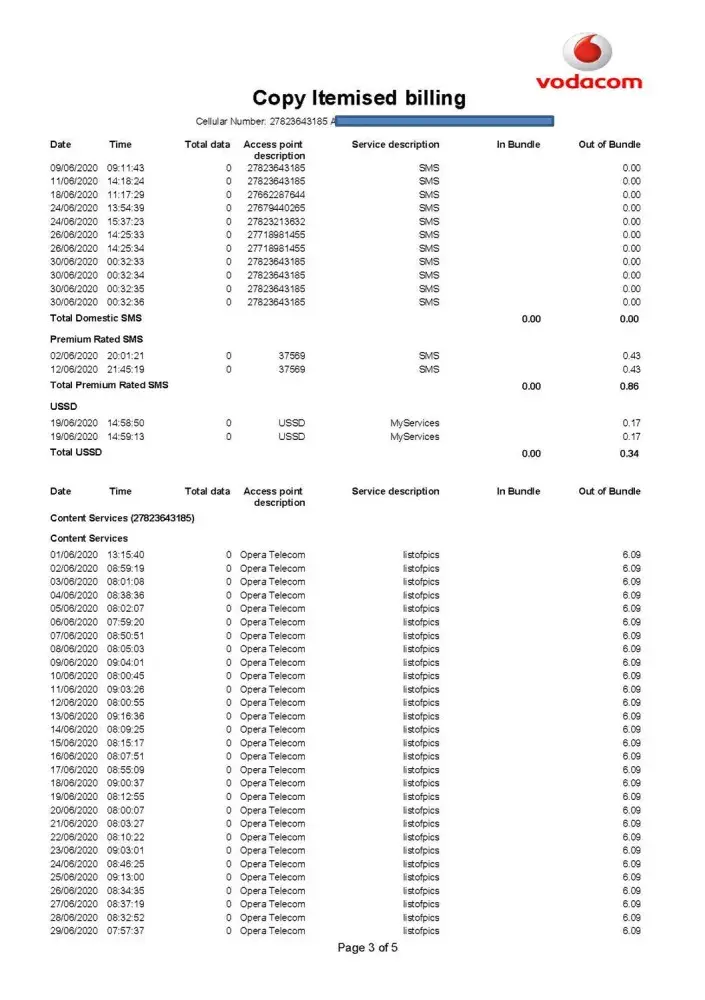I have seen this same complaint here - I have been charge 2 months running June and July 2020 for list of pics and have no idea what this service is for. I am extremely careful what I click on when on websites and do not enter my details into anything unless it is an official online purchase I am making. I have not asked for any services and have not authorised any deductions from my Vodacom account which I am watching carefully as due to COVID 19 Lockdown in our country we are having to watch our finances carefully as our industry has been seriously affected. I have managed to cancel the service and block it via Vodacom today but I need a refund as the total now stands at R427.21 which is a lot of money when your industry has been in lock down for 6 months now!