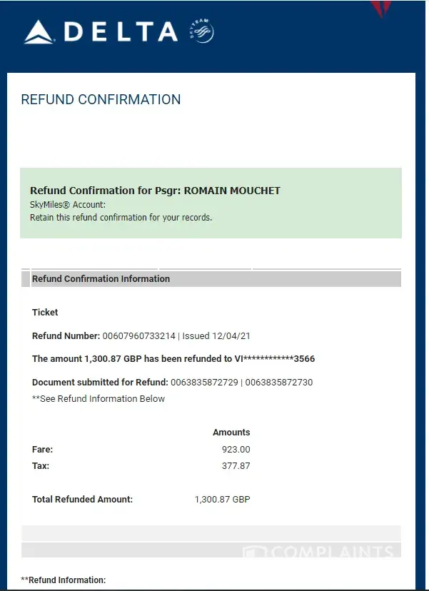 Refund Number: [protected] | Issued 12/04/21