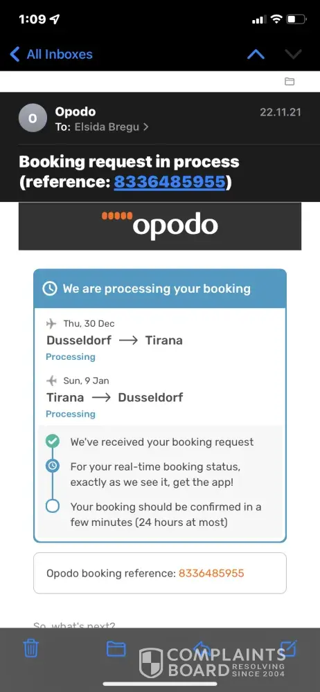 hello i am elsida i have made a booking with opodo for 30 /12/2021 and return to 9/01/2022 but i want to travel earlier for some reason my request is under process for some days now please help me cause the dates is soon and i want to resolve quickly . the date desired are 17/12/2021 and return 26/12/2021 .