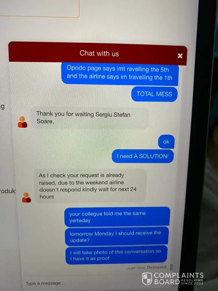 To all people who complain, OPODO do not live up to its commitments, further more on their server their promise to give the money back, in case of cancellation as soon as received from the airline between 3 and 7 days... not 70 days or more