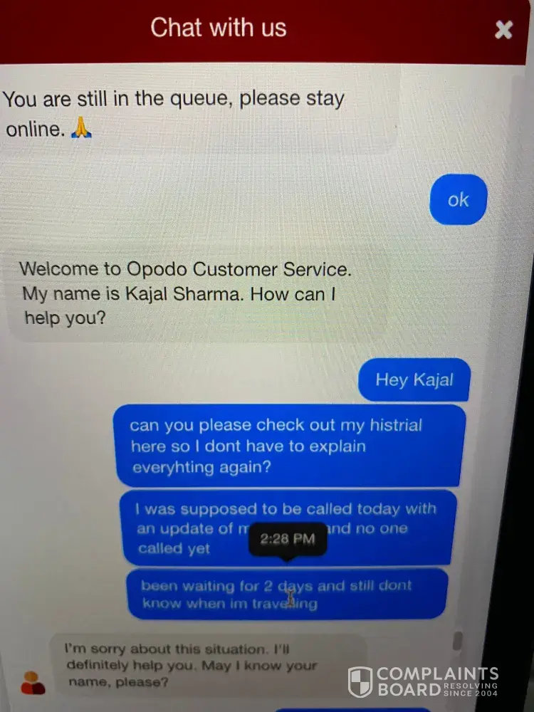 â³ Connecting you to Opodo Customer Service... We're waiting to assign you an agent.