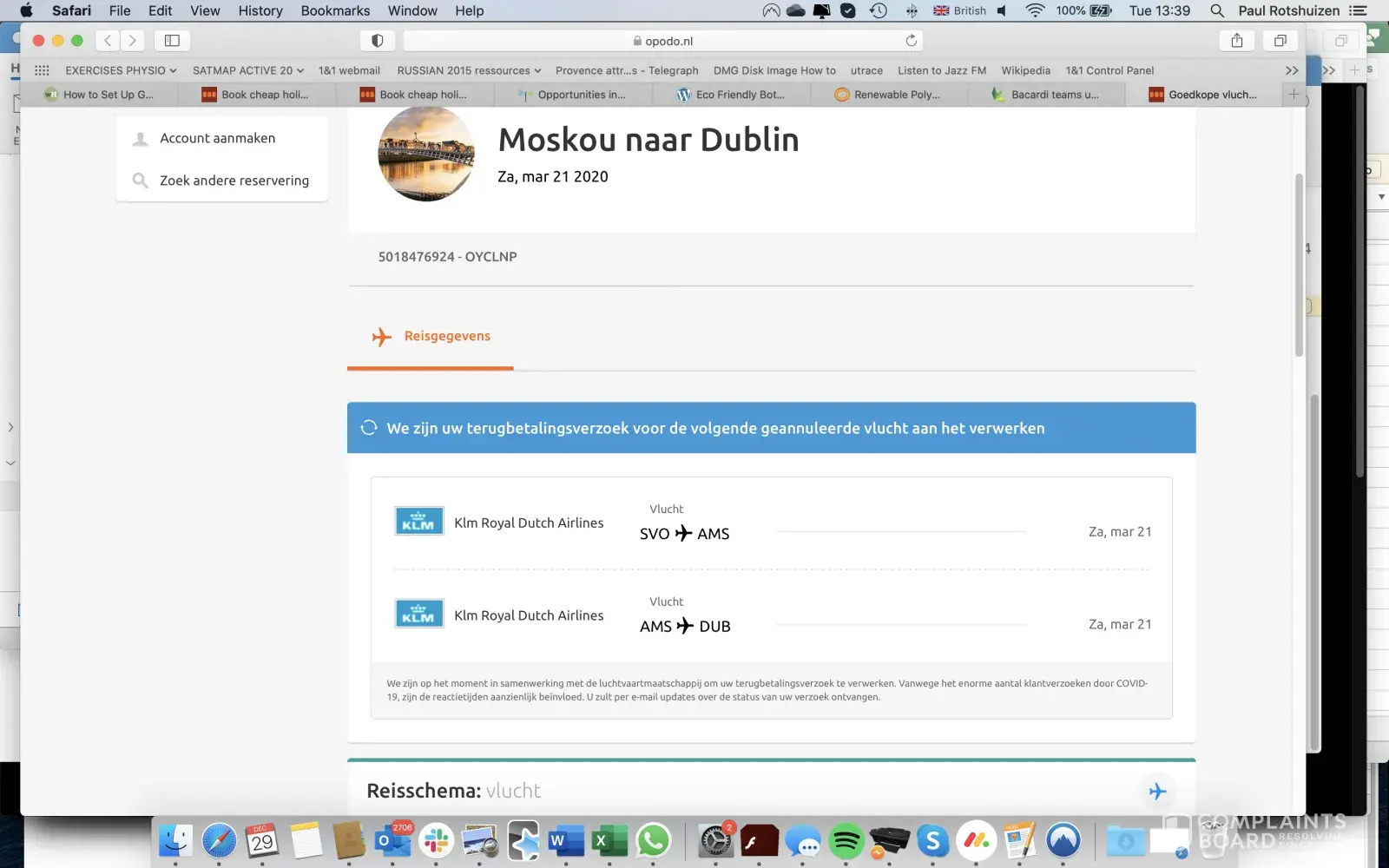 The following flight was cancelled fly KLM, due to CORONA: Moscow-Amsterdam/Amsterdam — Dublin, March 21, 2020. Booking through Opodo, booking ref OYCLNP, Opodo-reservation number: 5018476924.