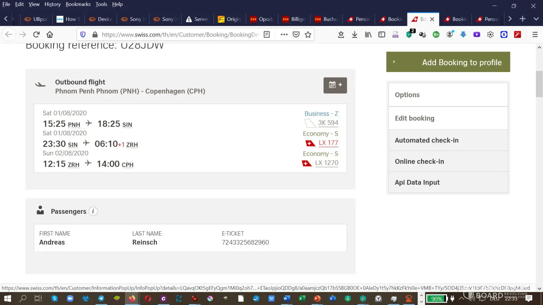 On 20/06/2020, I booked a return flight from Manchester UK to Lagos Nigeria for Saturday 11 July 2020 to return Tuesday 28 July 2020 with Opodo booking reference: 6620910794 and Lufthansa Airline reference: UYZWBR, confirmed by email. On 22/06/2020, I received another email from Opodo stating that the airline had made a schedule change to my flight. Again on 3/07/2020, I received another notification of a "major schedule change" by the airline from Opodo. Then followed by two more notices of schedule change, by email from Opodo, on 6th and 7th of July 2020. On 23/07/2020, I received another email from Opodo with notification of cancellation of my flight with options for asking for refund or rebooking via change of dates. I opted for a change of date. On 25/07/2020, I received a reply from Opodo confirming my request for change of dates. By 29/07/2020, I received another email from Opodo stating that they were still "moving forward with my request". That was the last communication with Opodo as Lufthansa dealt with rescheduling my flight to 14/12/2020. I continued to deal directly with Lufthansa on my flight issues until 13/12/2020, when I called Lufthansa to book for extra baggage and was told by their Call-centre representative that Opodo cancelled my booking and had taken a refund for my ticket on 02/12/2020. I never requested for cancellation of my flight or refund because I had been confirmed as flying on Lufthansa flight for 14/12/2020 at 06.15am. I thought it was a joke until I arrived for check-in at Manchester airport Terminal 1 Lufthansa desk and was denied boarding.