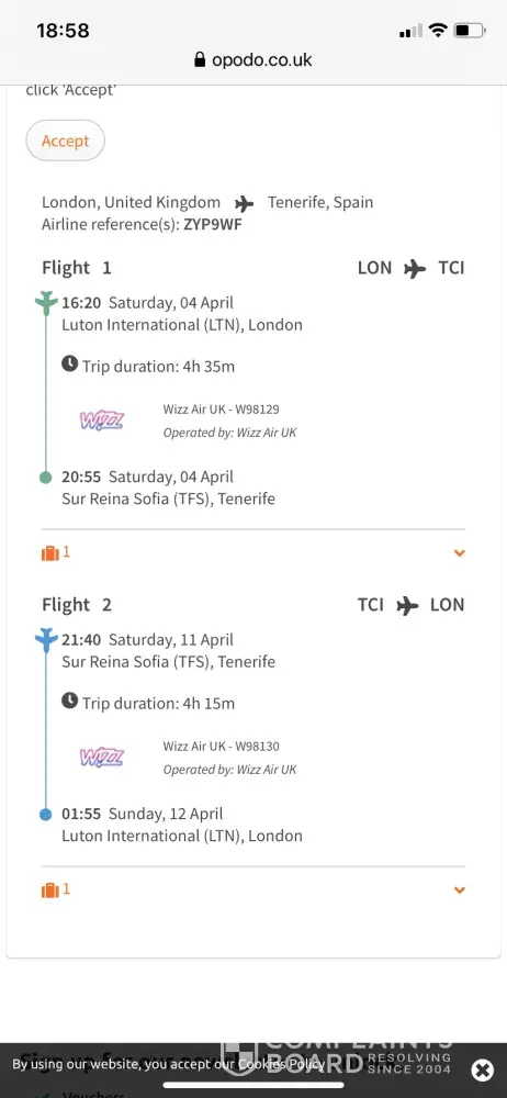 Opodo has caused the most stress ever, in my 40 years of flying.,