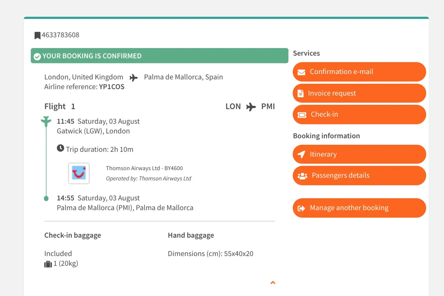 Booking #4633783608 Gatwick (North Terminal) to Palma Mallorca