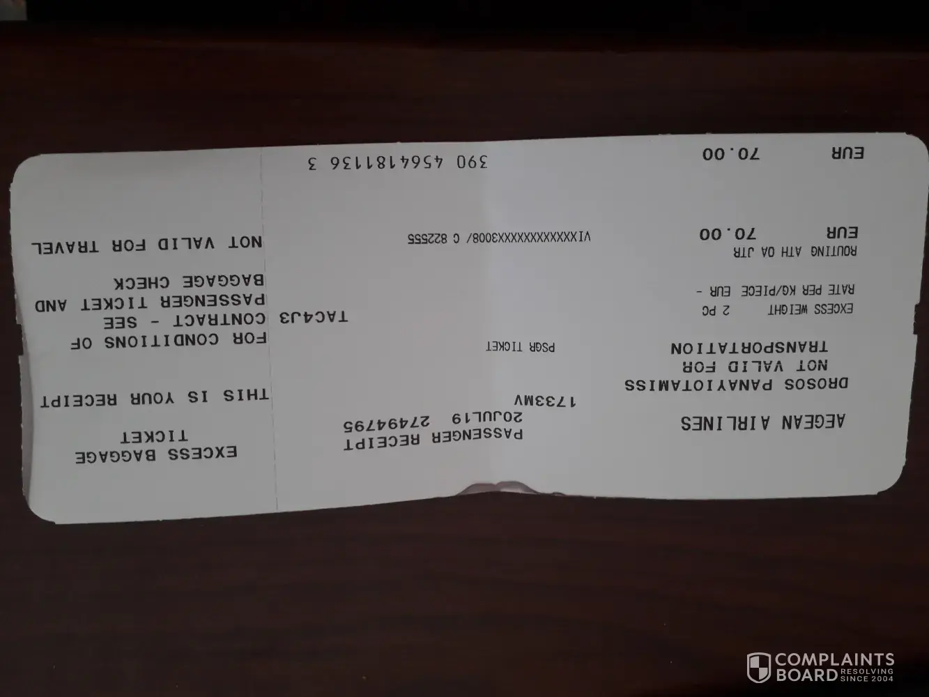 I have purchased a ticket via OPODO for travelling from Athens to Brussels on 1st September, references below (Aegean airlines, 1st September, ref: SAX 73D)