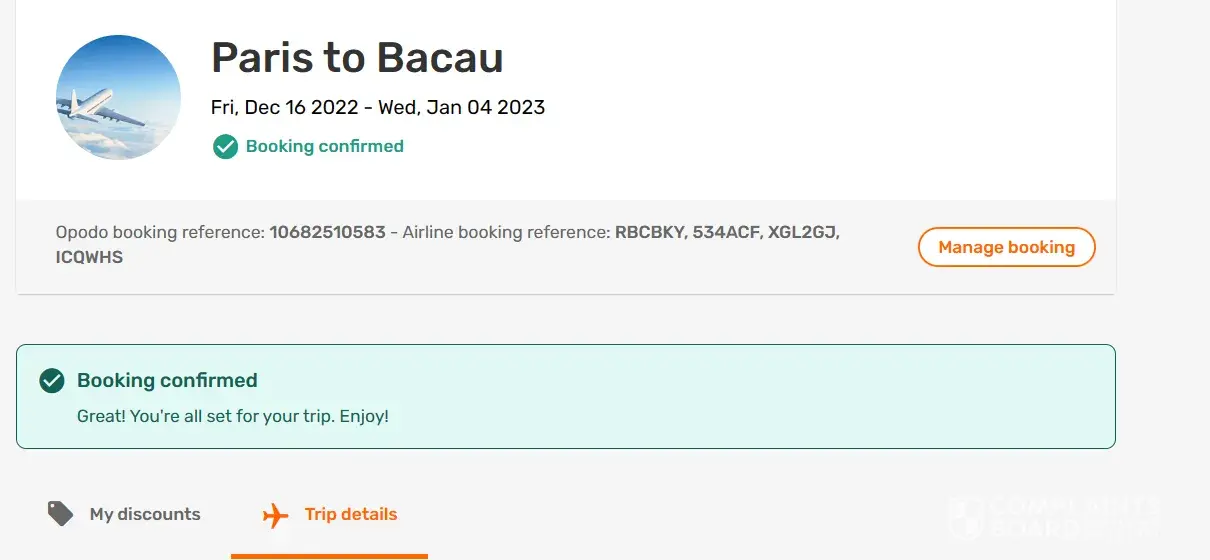 to 16 dec 2022 with opodo i,m stiill waiting for any confirmation or details regarding this trip nothing at all but the cost of fly and hotel was taking from