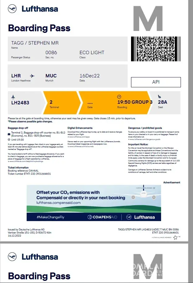 Yesterday, 27/11/22, I bought a flight for my partner :