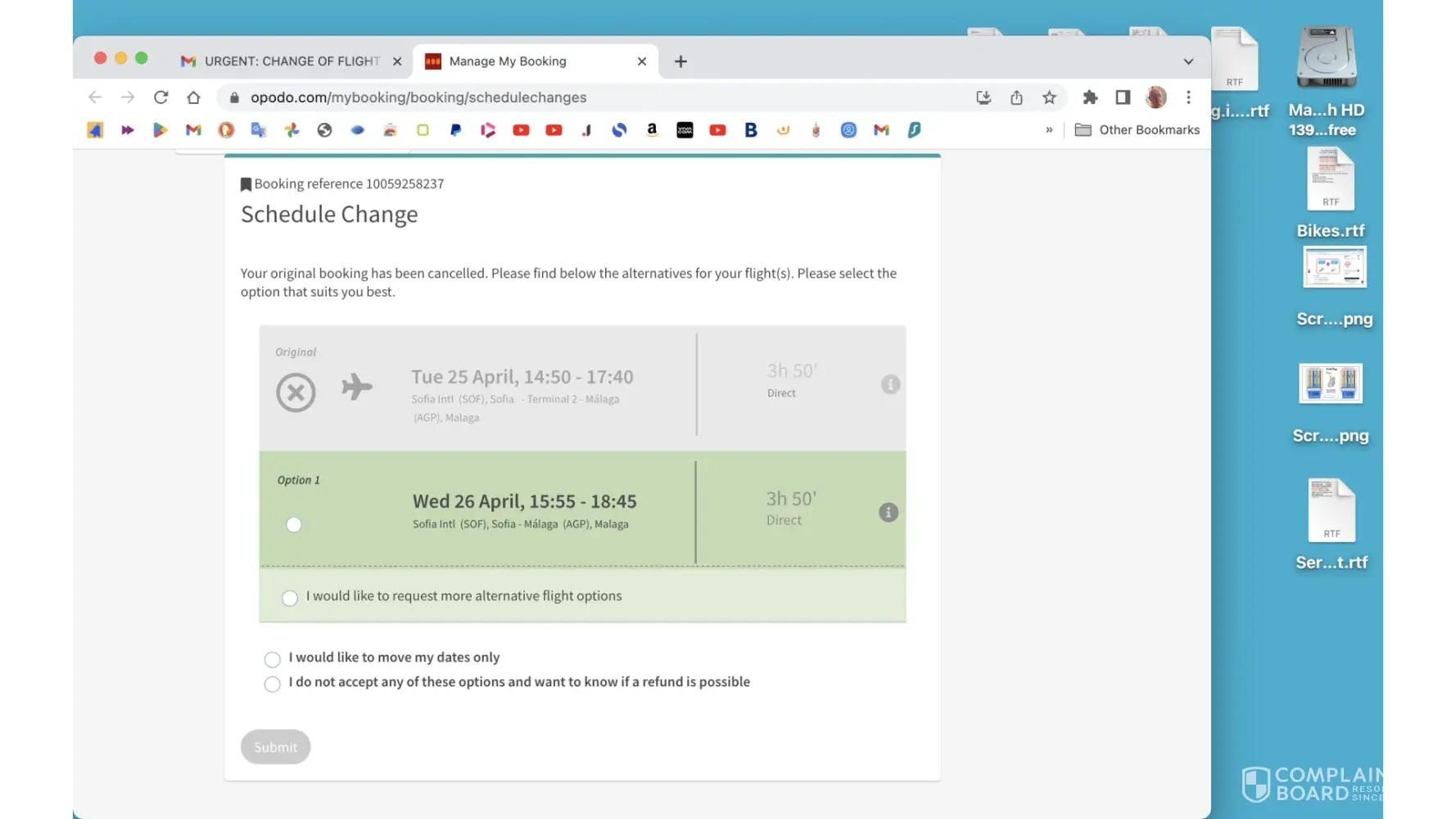 I believe that I have told everything that is required for the consideration of the complaint. I'm still waiting for a response from the OPODO. And I agree to an alternative flight.