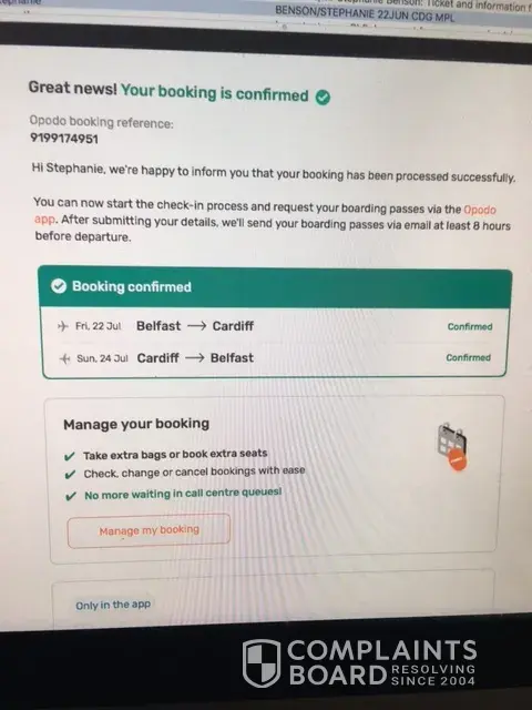 As it turned out, Opodo never actually booked the flight, yet they debited the money. I have been contacting them every day to try and find the booking, but there is no human I can speak to and the chatbot just keeps taking you round in circles.