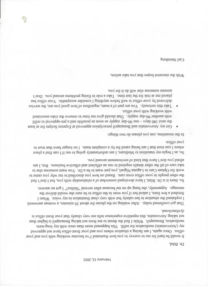 I look forward to hearing from you on a resolution of yet another Optum issue (the last one was from May 2020).