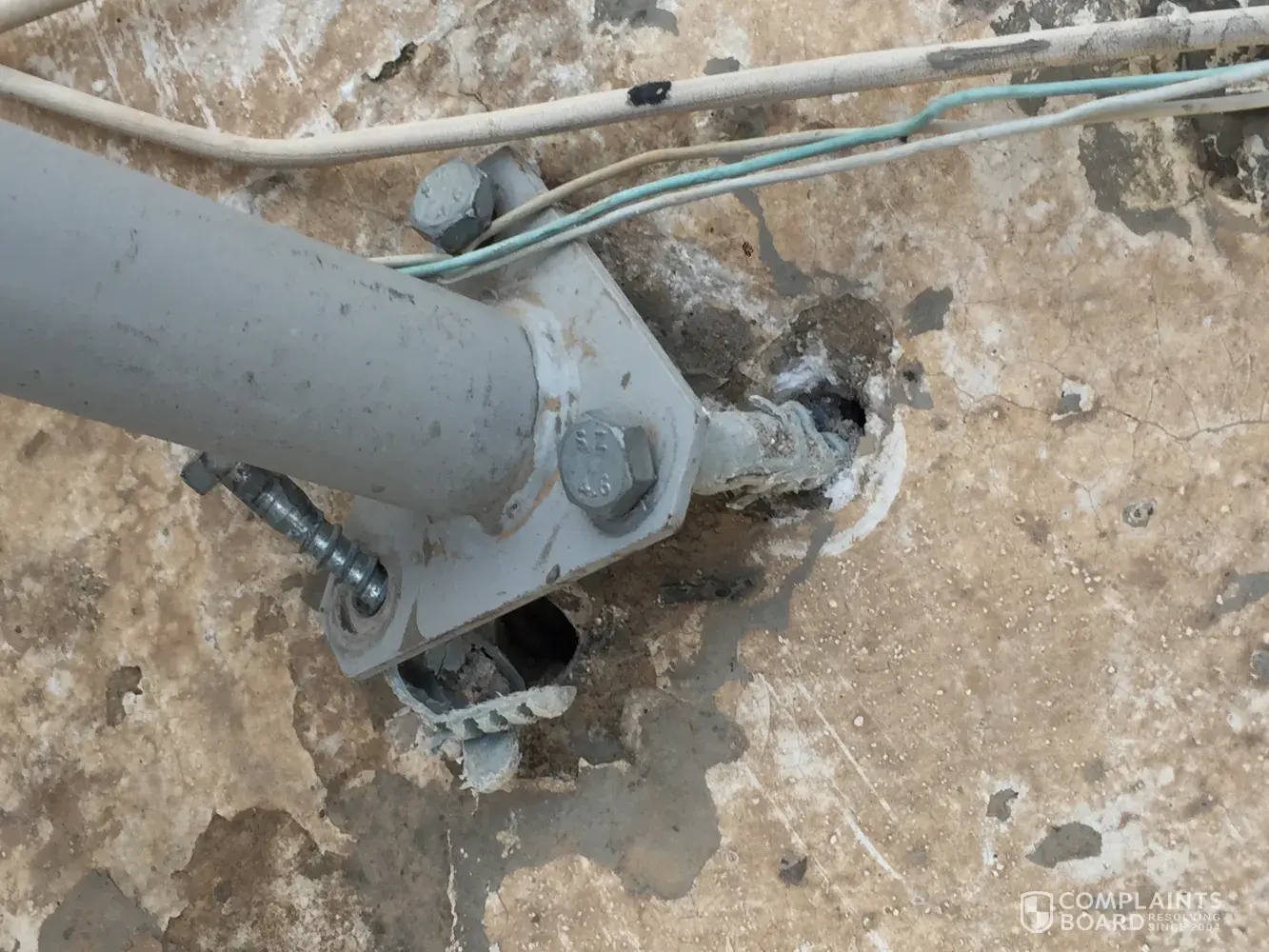 I'm in Alexandria, Egypt. We had windy weather and I went upstairs to check the dish and the bolts had come off the ground as seen in the pictures below. I have more than 10 dishes and they are all okay except for the OSN one.