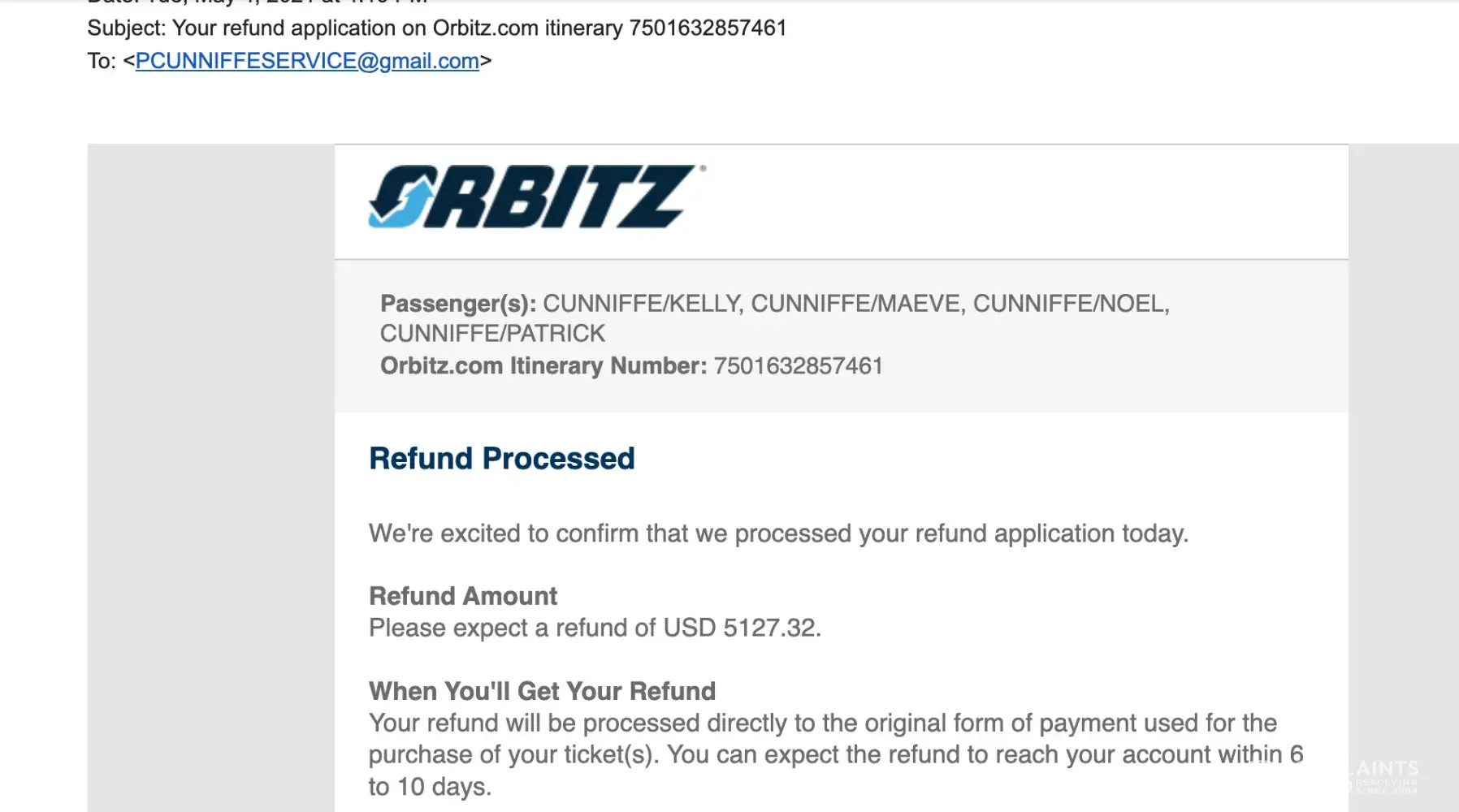 Orbitz refund not received 20 months later