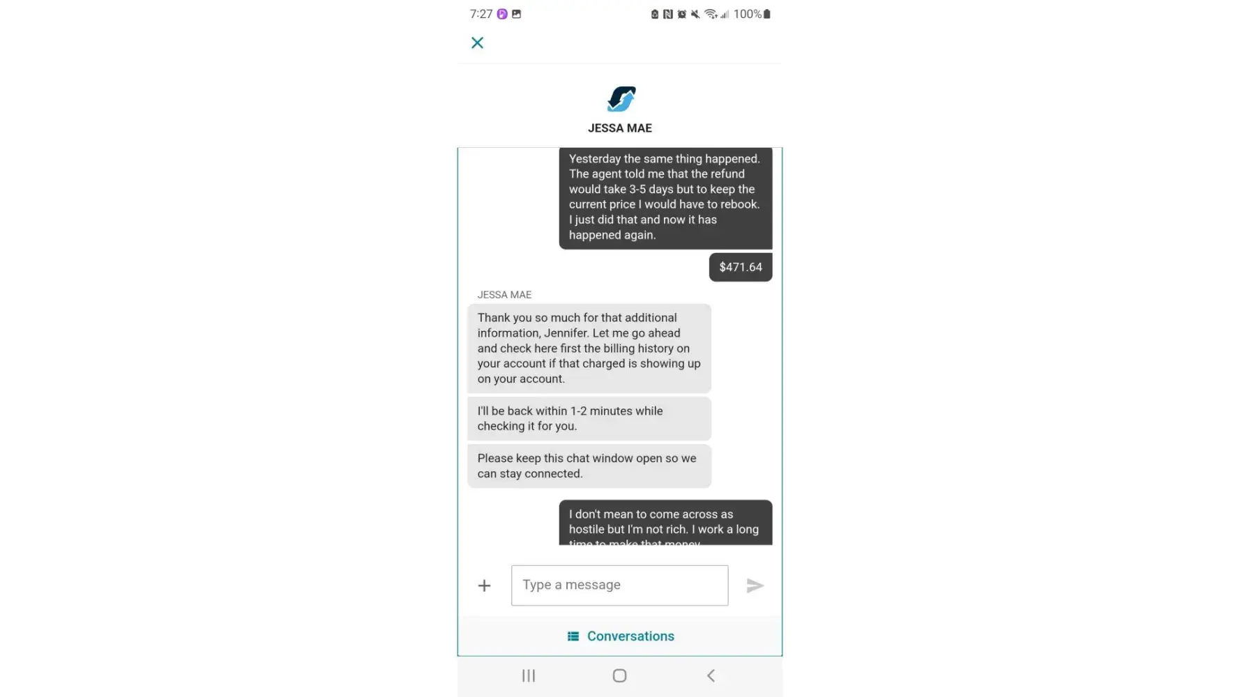 Desired outcome: REFUND IMMEDIATELY