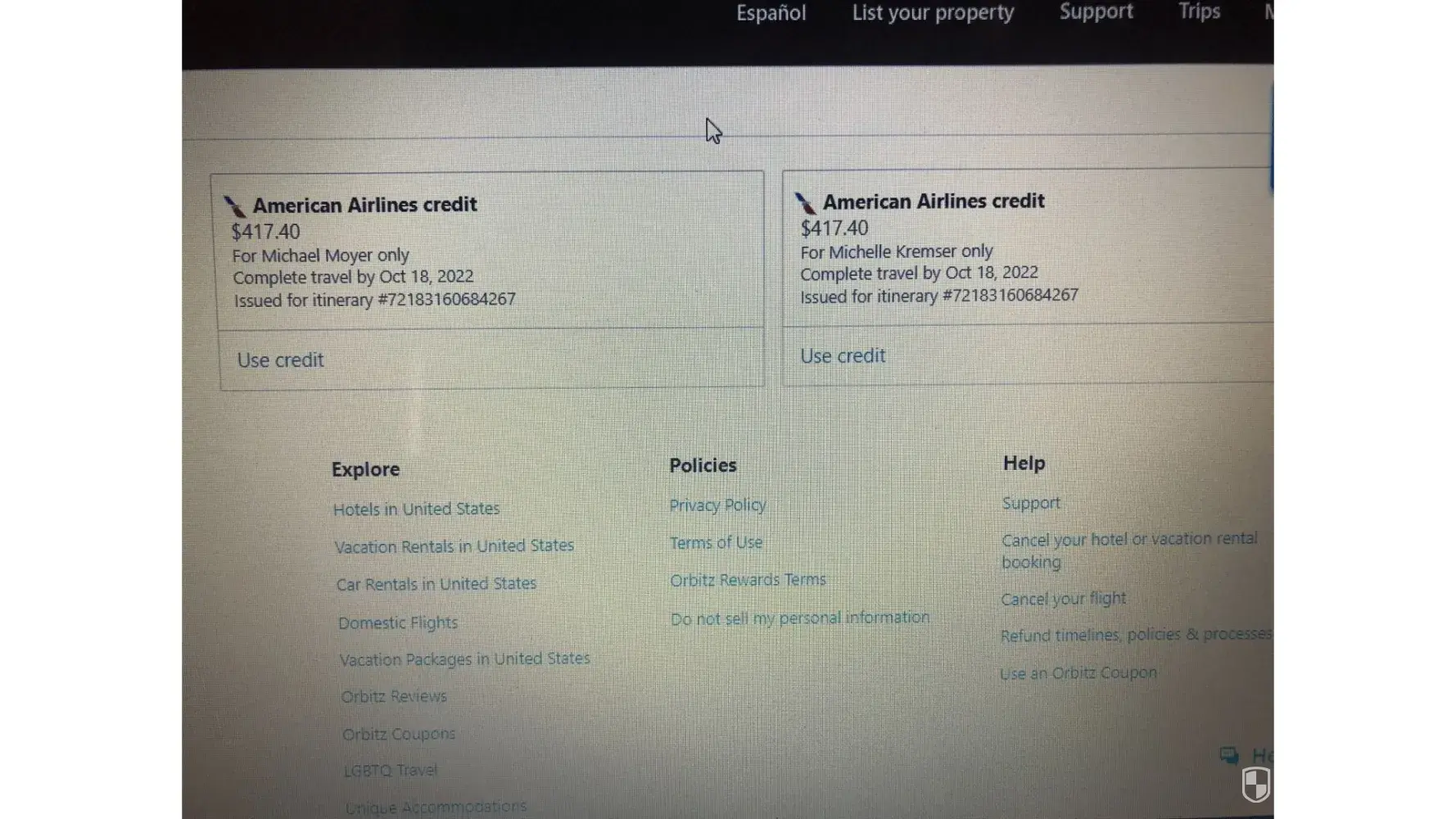 Orbitz Credit
