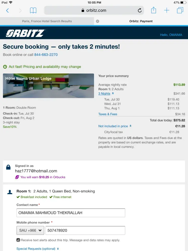 Orbitz reference orbitz itin [protected] Req-E-[protected] emails correspondence since April 22nd 2019