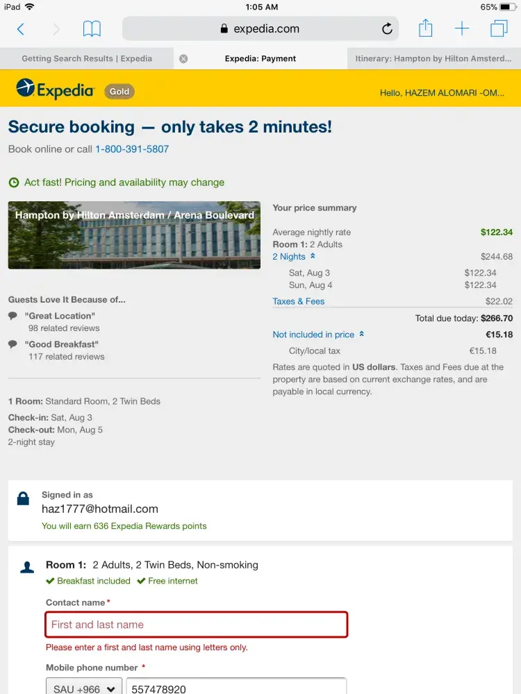 This is my first time using Orbitz to purchase airline ticket, and sadly I had a very bad experience and wasted a lot of my time waiting on their phone line addressing the issue. I wanted to book a flight on Hawaiian airline flying from Honolulu to Singapore for me & 2 kids, I had called Orbitz before booking with them, because I like to confirm 2 things -