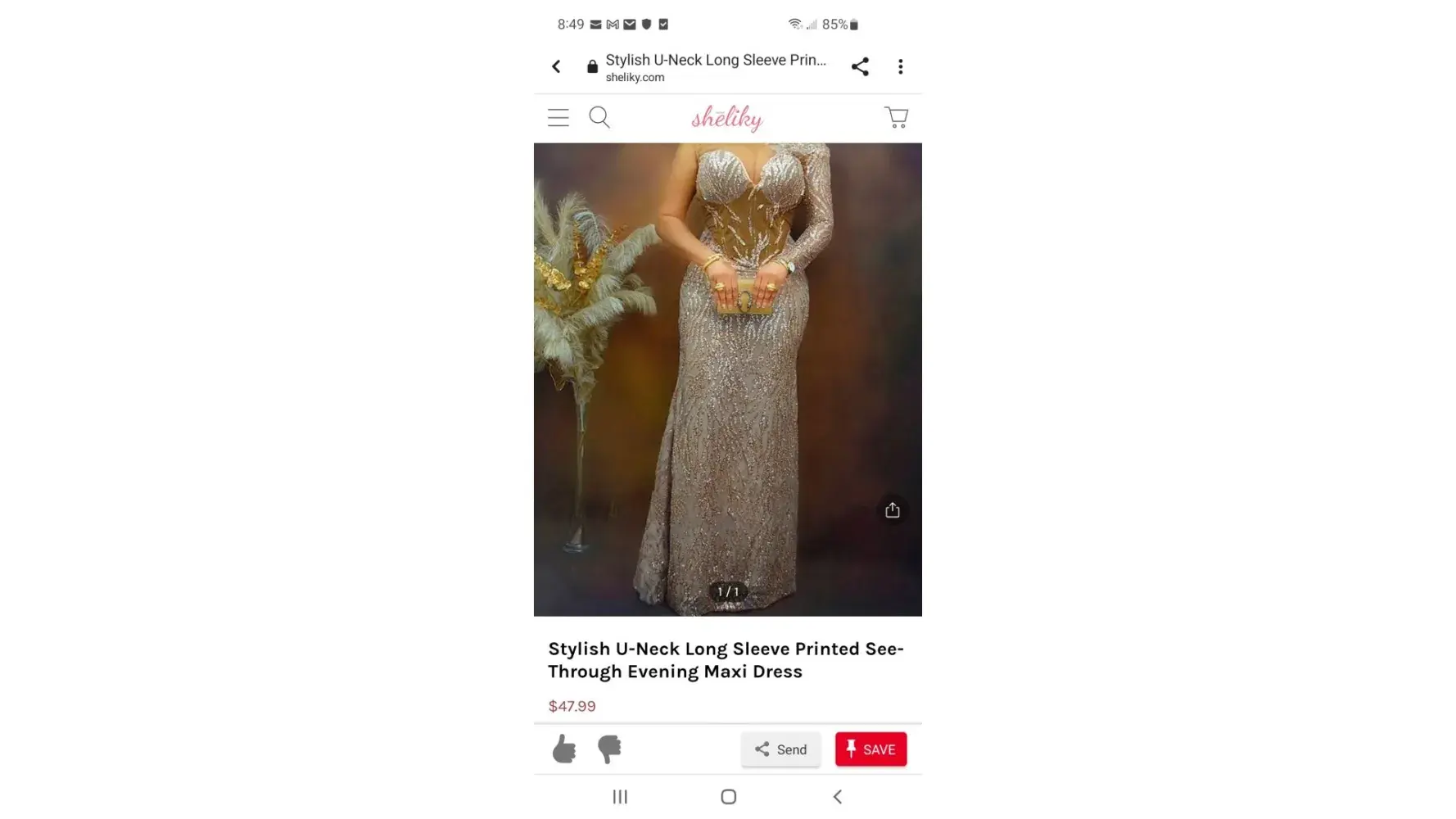 Stylish U-Neck Long Sleeve Printed See-Through Evening Maxi Dressx1