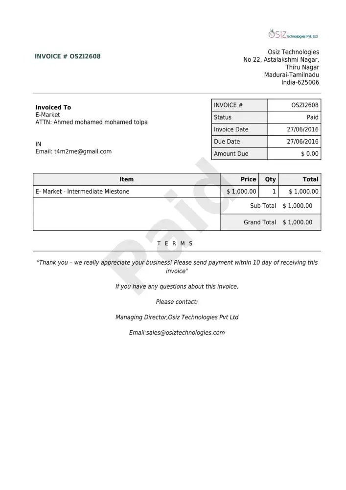 Osiz Technologies regarding one project have two years