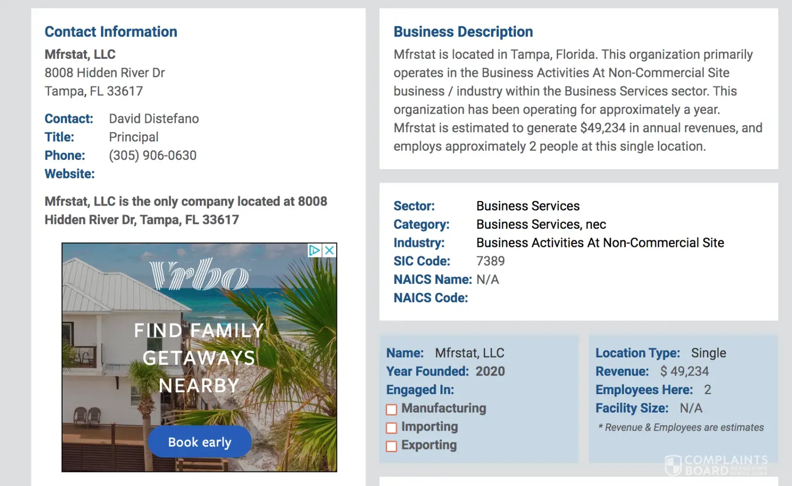 Warning! Do not invest in any company, products, holdings account or business started, operated or involved with David Michael Distefano, 54, of Tampa, FL / Baltimore, MD. David DiStefano began MFR Stat, LLC when the pandemic provided a reason to scam. This was after his attempts at hitting up churches to help them gain donations didn't work. David will...