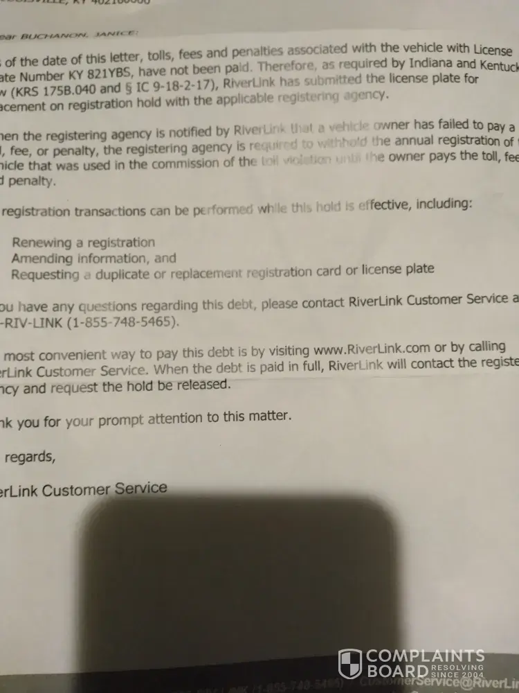 I received a letter stating I owed $8.00 for toll, I paid it with a debit card 2 months later the fee is $68 and fee from 2 yrs ago has been added which I had paid. So I filed a complaint with Better Business Bureau, BUT RIVER LINK Never responded to them are me until BBB has written them a week later in a retaliation move from Riverlink. They put a block...