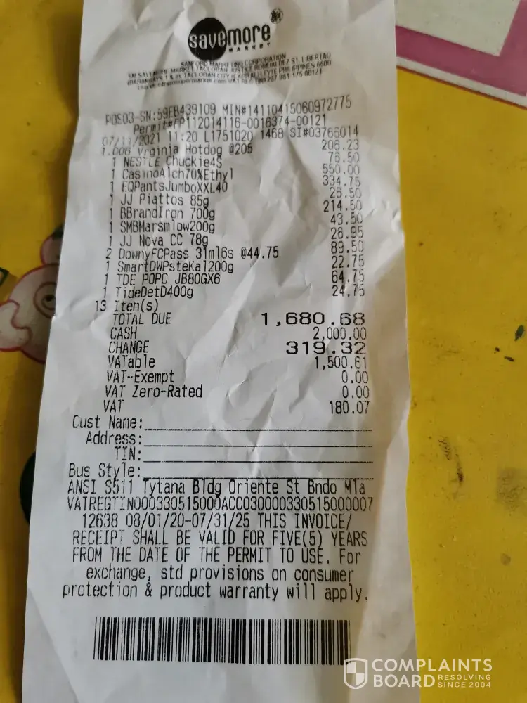 Read full complaintSavemore Tacloban - My sm advantage card was not used by the cashier