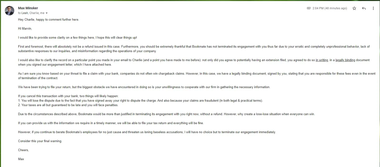 Read full complaint and 2 commentsTryBookMate - Tax preparation