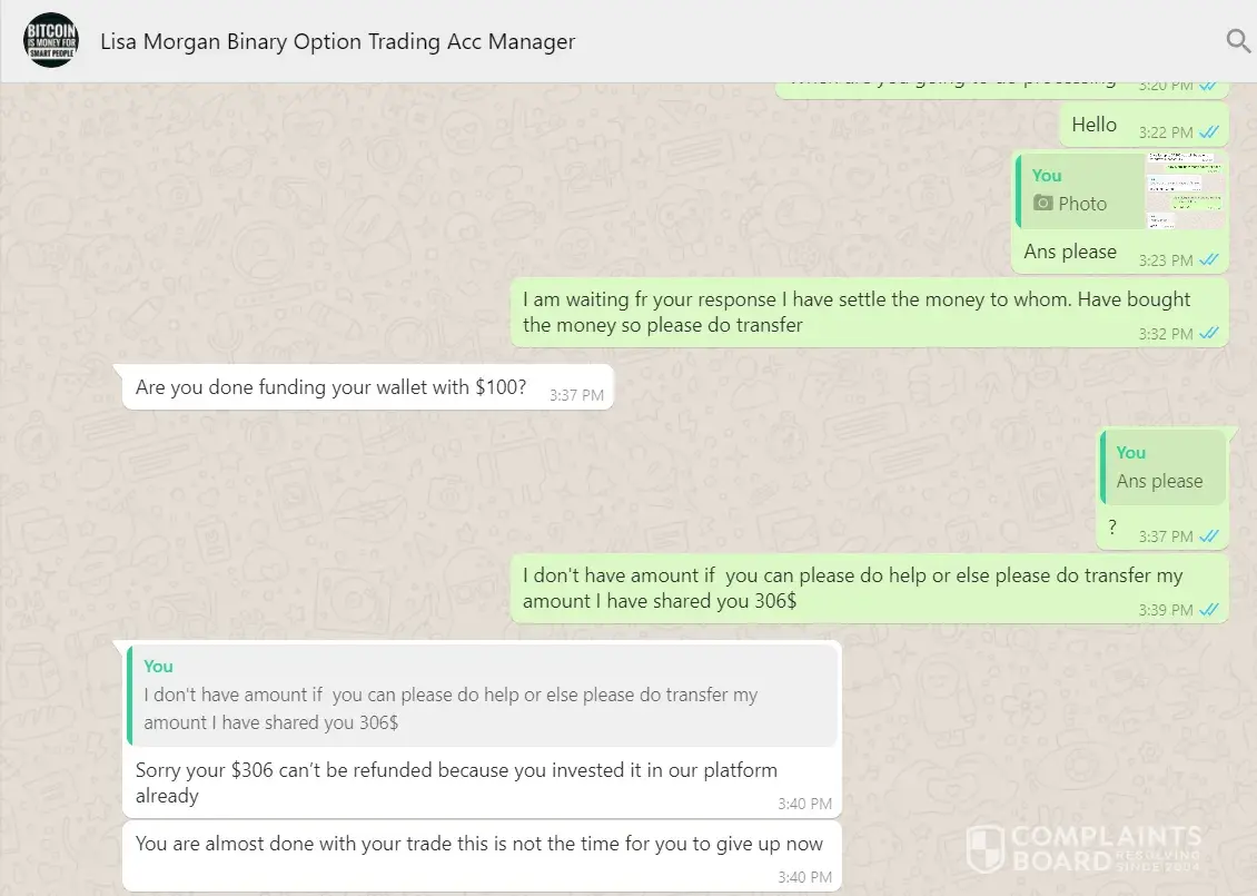 Dear Sir, Madam, Lisa Morgan (she has cheated me - $310) The Name of Trading (www.Cryptomill.online) I am Raja and I am from India. I am here for to raise complaint against Mrs. Lisa Morgan, she swindled me, and She has swindled countless people in her lifetime the name of Cryptomill.online she Grew up in Toronto, Texas and now she moved to Los Angele...