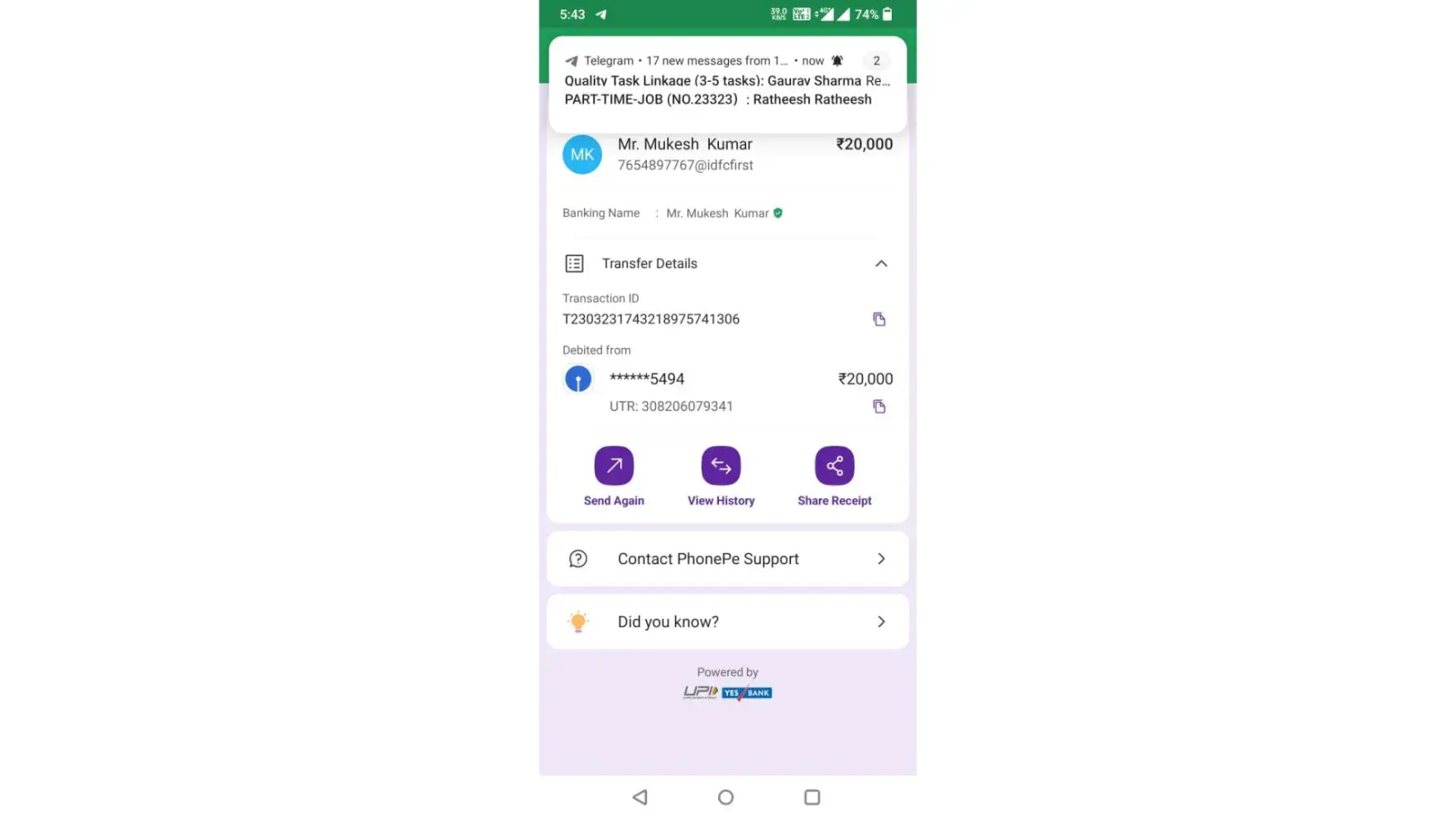 First he messaged on WhatsApp and said he has part time work. You can earn [protected] from it. He said that he wants to share the screenshot by just liking the YouTube video. When I earned 15000 they told me to add 3000 first then 5000, 20000 to withdraw it. Asked to add 65000 again to give 60% remuneration on top of total 28000. Even after adding total...
