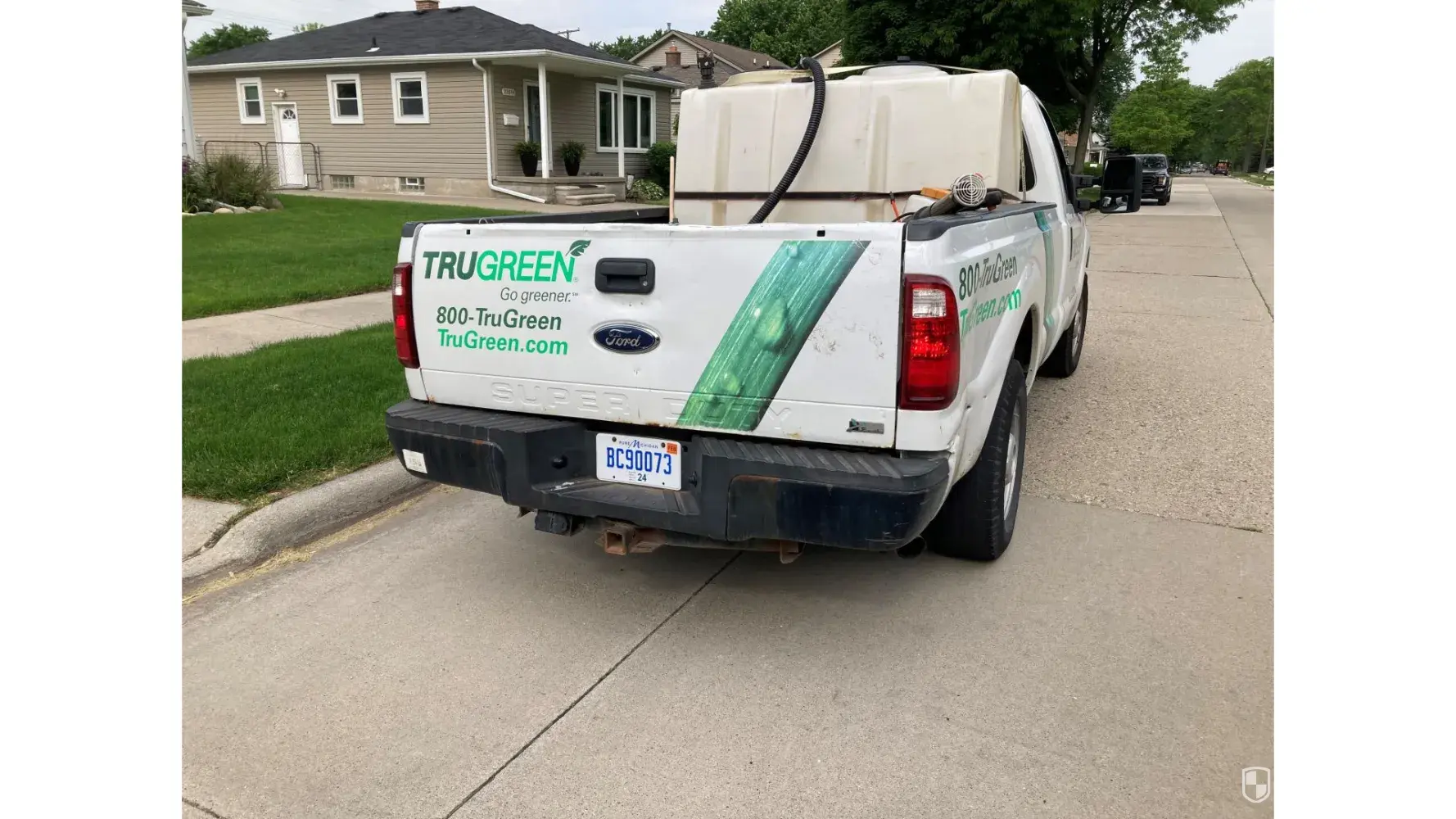 On June 1, 2020 at 9:27 am the Driver of the True Green Truck with the license plate BC90073 backed into my driveway and hit my truck denting the bumper. I watched this happen from the window in my upstairs home office. I ran down stairs to see him take off. So I followed him and caught up to him at his next customer stop. He denied it then said he wa...