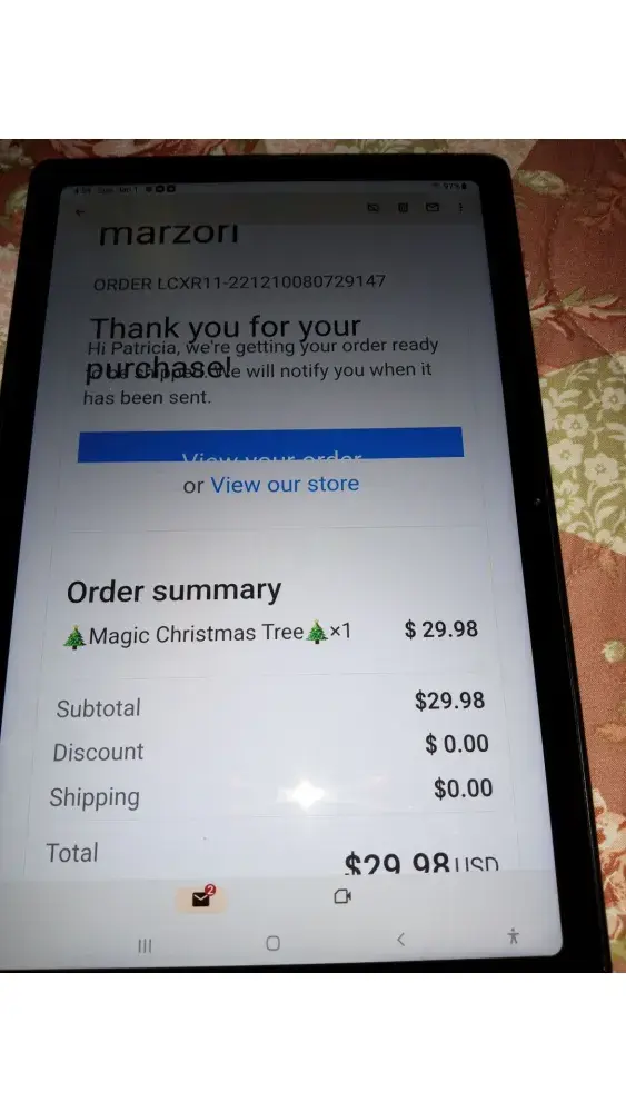 Yes I paid for a magic christmas tree from this company and have not recieved my package I have sent many emails to them asking where it is and they keep giving me the run around I have tried to track it with the tracking number but can't find it. I have went to post office and showed them the tracking number and they said that they do not have a package there i. Showed them the tracking number they couldn't find my package