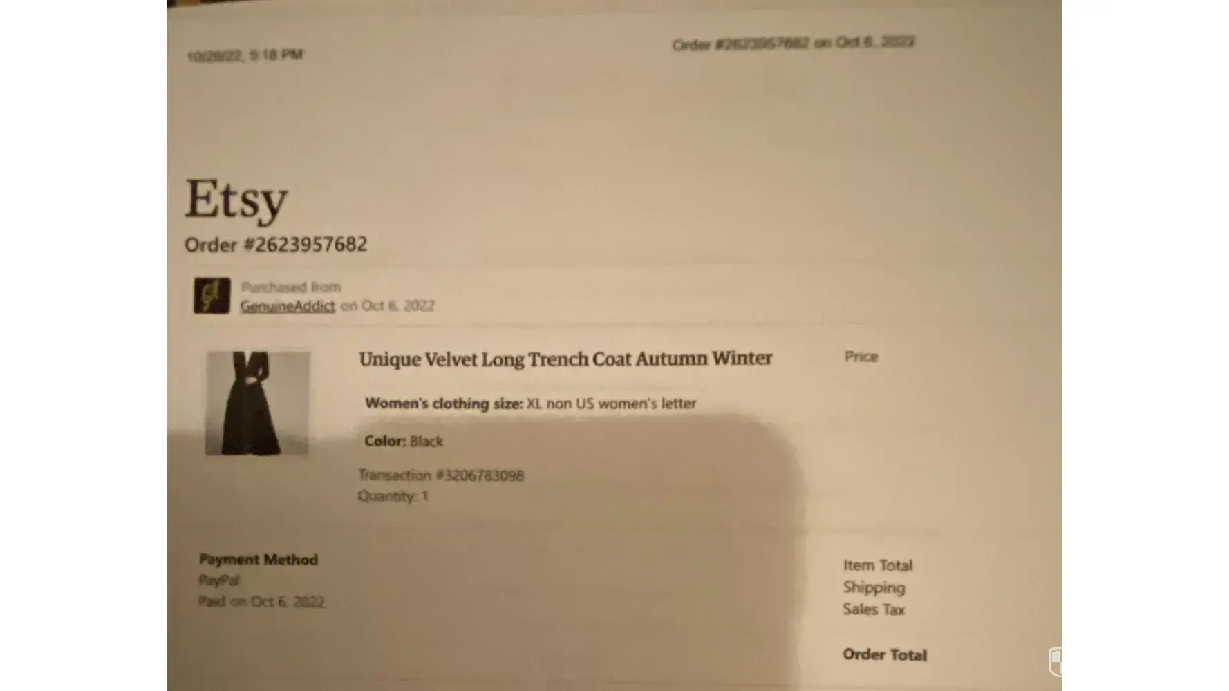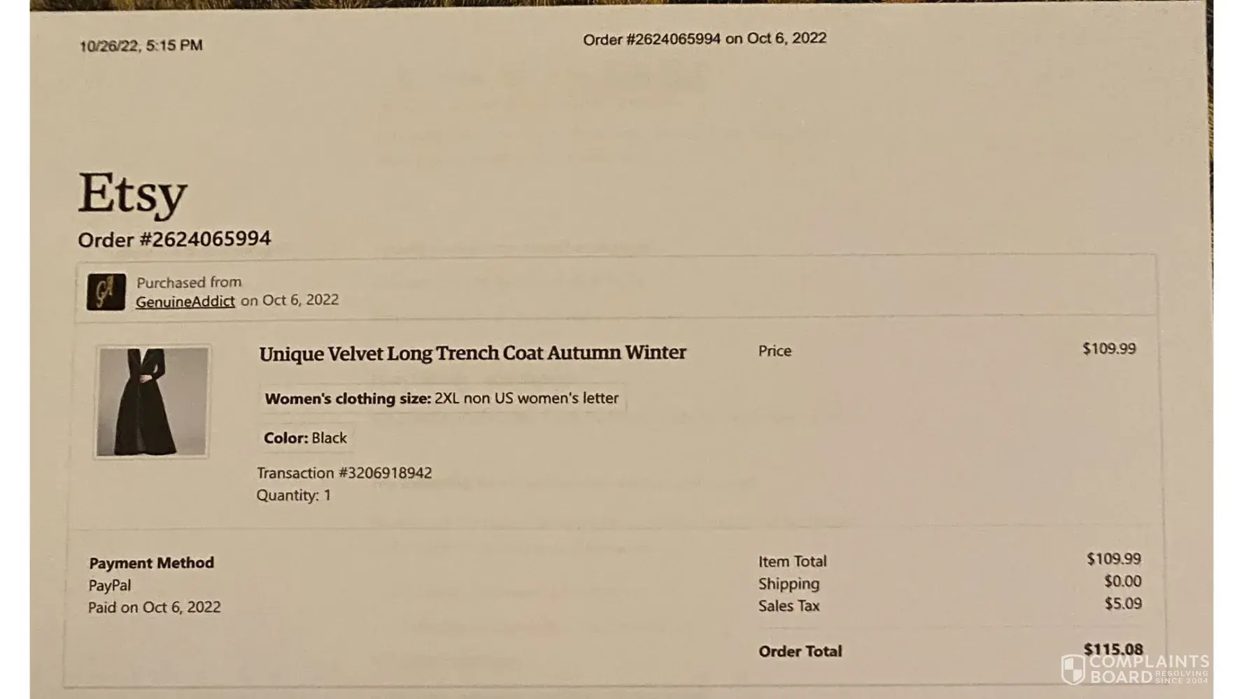Read full complaintGenuine Addict - China - Order# [protected] cost $115.08 blk coat xl trans # [protected]/ order#[protected] cost: $155.08 blk coat 2xl trans# [protected]