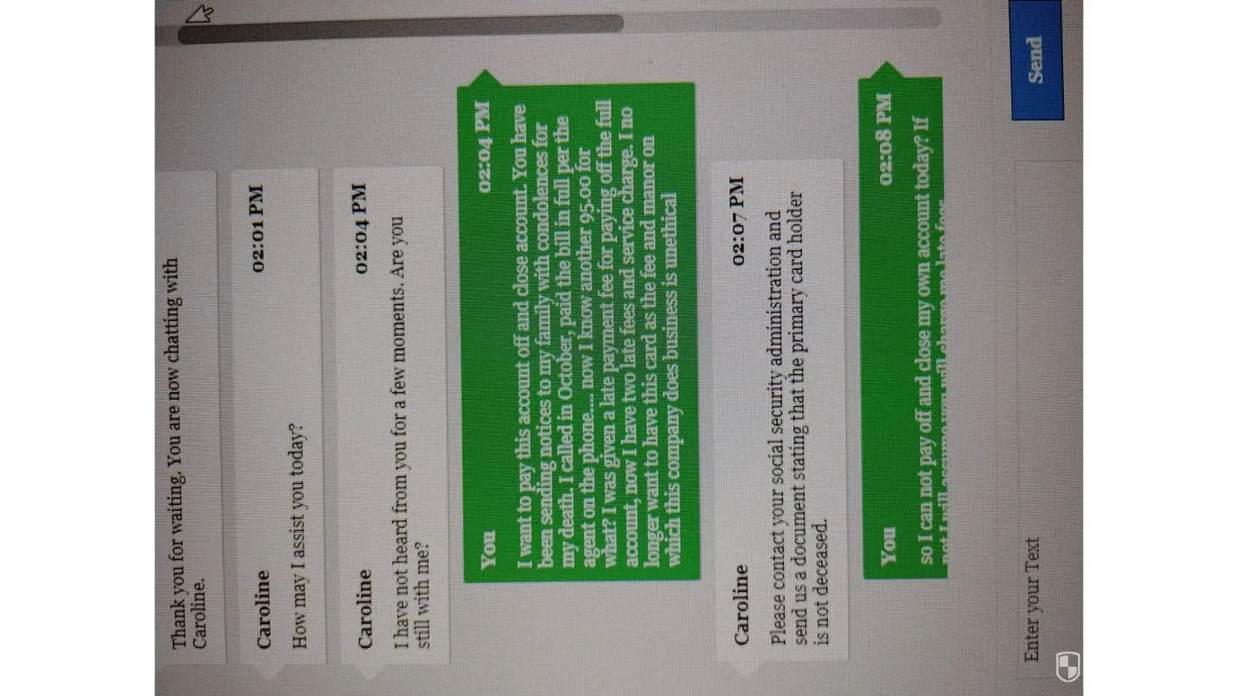 Fortiva credit card company has on file that I am dead. I contacted company in October, paid the balance in full as per the agent on the phone. After making full payment they charged me a late fee, and now will not let me pay off account and close account until I provide proof I am not dead. They have 95.00 in fees for a paid off account and will not let me pay, which will lead to more late charges etc. This is unacceptable.