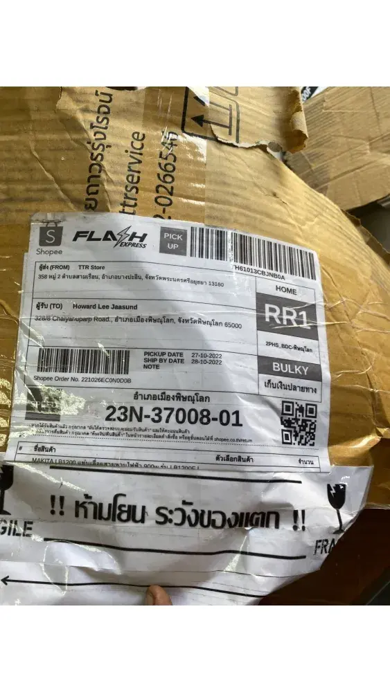 Let me tell you about the ongoing problem I, friend Howard Jaasund am having with Shopee. My account, ORDER ID: 221026EC0N0D0B. I placed the order for the Makita LB1200 Electric Band Saw, total cost ฿25,893, a month ago on 27 October 2022. When the package arrived, I inspected it. The outer shipping box was pristine. He paid the driver. But the shipping...