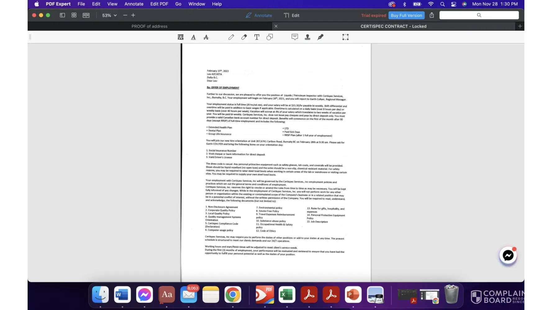 Read full complaintCertispec Services Incorporated - Employee benefits and illegal termination